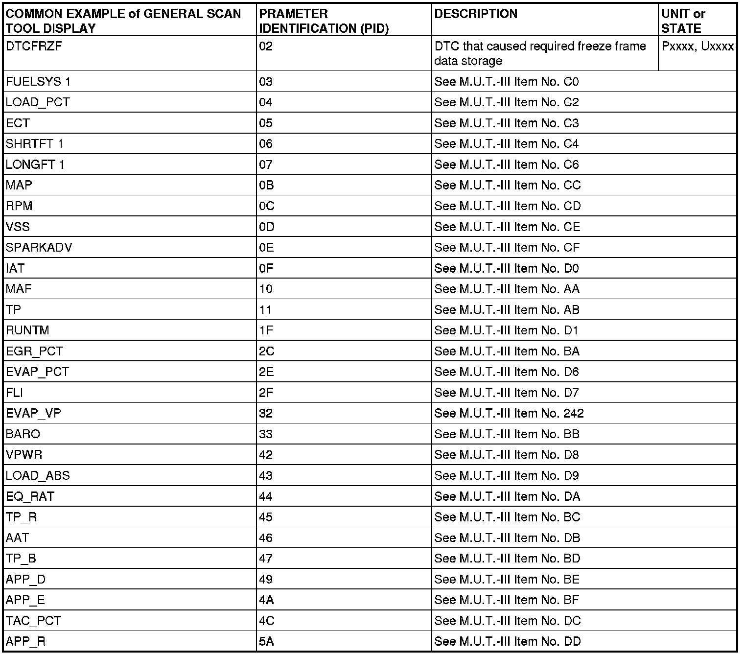 Freeze Frame Data (OBD) for M.U.T.-III