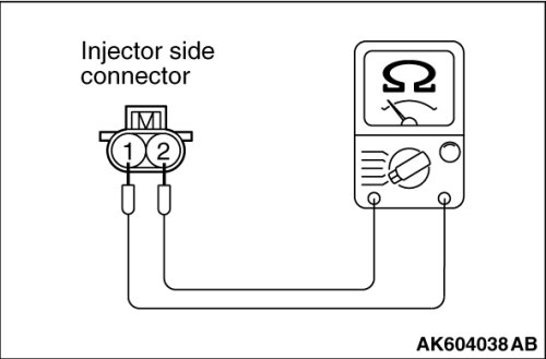 (2)Measure the resistance between each injector side connector terminal No. 1 and No. 2.
