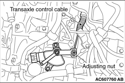 5. Tighten the transaxle control cable using the adjusting nut with the specified torque.