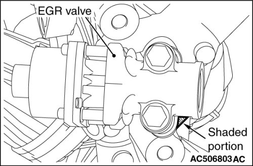 Install the EGR valve gasket so that its shaded portion is set as shown in the figure.