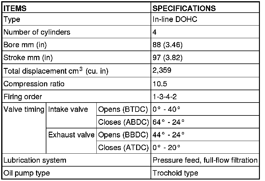 The 4B12 (2.4 L) engine is an in-line four-cylinder engine. The cylinder numbers are assigned as 1-2-3-4 from the front of the engine (