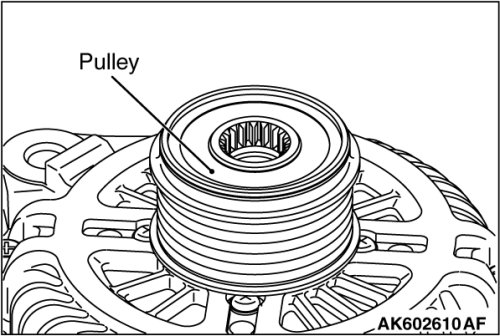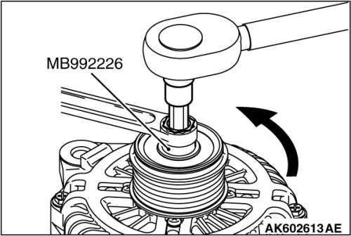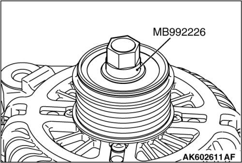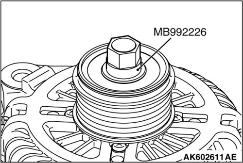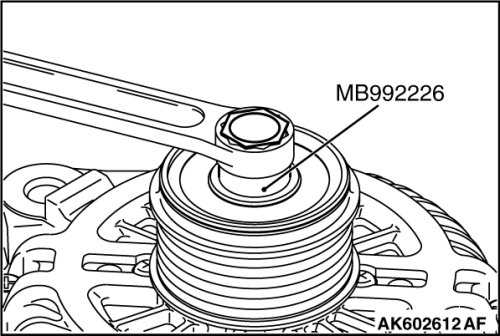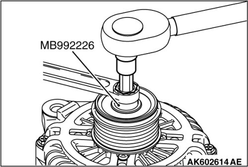 1. Set the special tool Serration socket (MB992226) to the pulley.