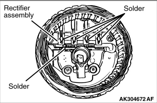 1. Unsolder the stator leads from the main diode of the rectifier assembly when the stator is removed.