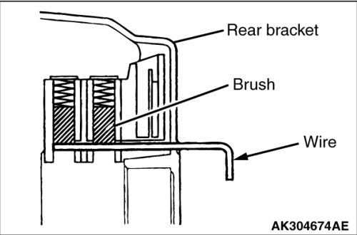 After installing the regulator assembly, insert a piece of wire through the hole in the rear bracket while pressing the brush to keep the brush against movement.