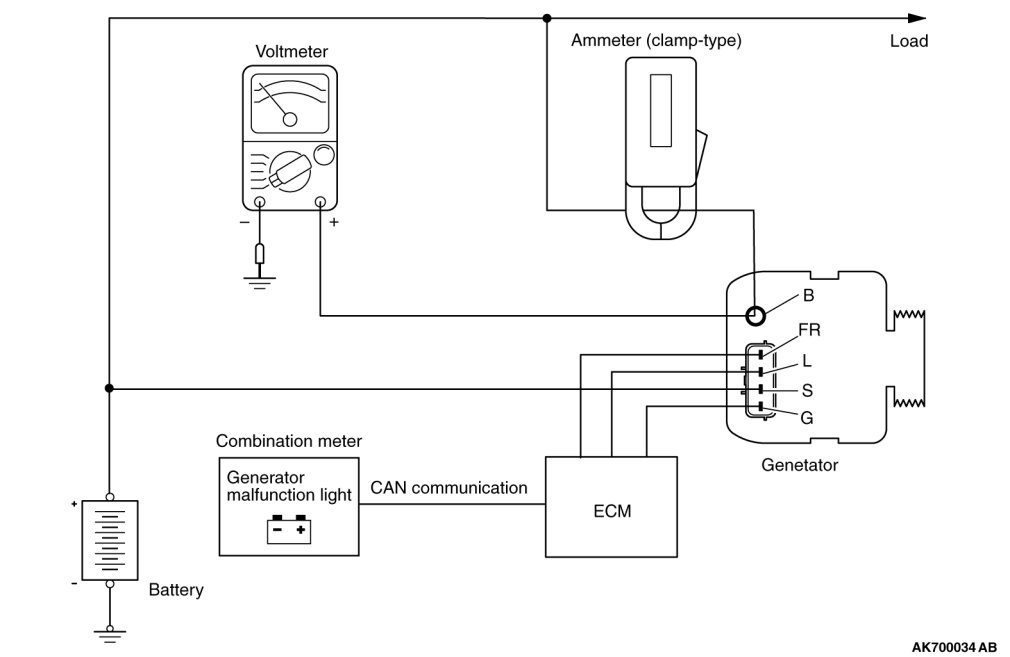 Disconnecting the generator output wire and connecting the ammeter may not thoroughly diagnose an output current drop problem because of an insufficient connection between terminal "B" and the output wire.