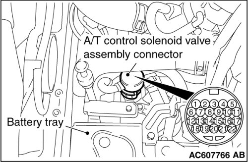 1. Disconnect the A/T control solenoid valve assembly connector.