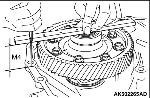(2) Install the differential assembly on the converter housing, and measure the distance M4 from the differential case to the edge of converter housing.