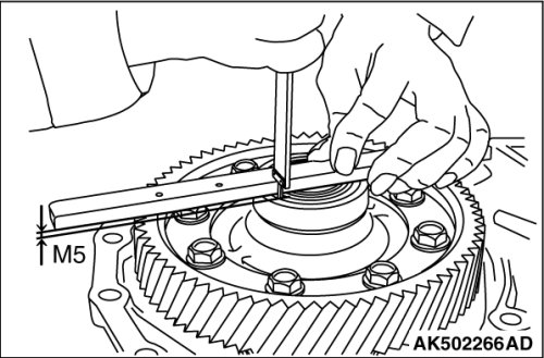 (3) Install the outer race on differential side bearing, and measure the distance M5 from the differential case to the outer race of differential side bearing.