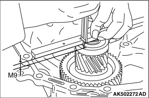 (3) Install the outer race of reduction gear side bearing on the bearing, and measure the distance M9 from the edge of reduction gear assembly to the outer race of reduction gear bearing.