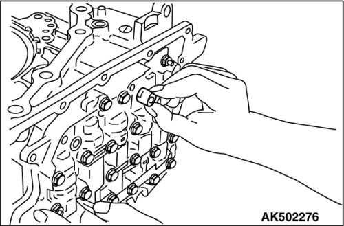30. Install the O-rings on the oil pump fastening bolts.