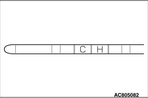 5. Check that the transmission fluid level is within the "H" area on the oil level gauge. If the fluid level is low, add the transmission fluid to the "H" level.