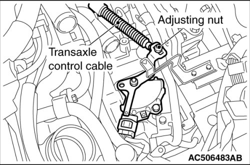 5. Use the adjusting nut to tighten the transaxle control cable to the specified torque.