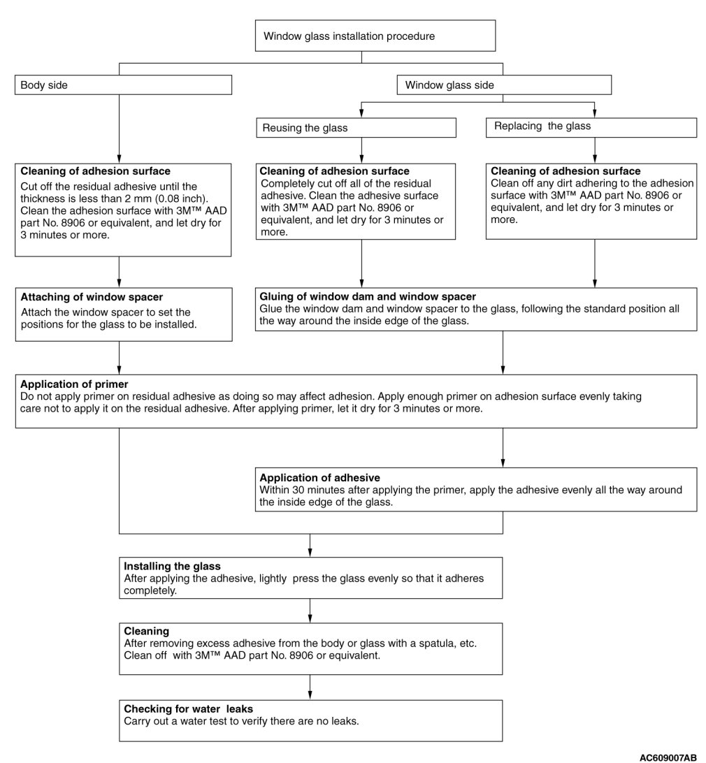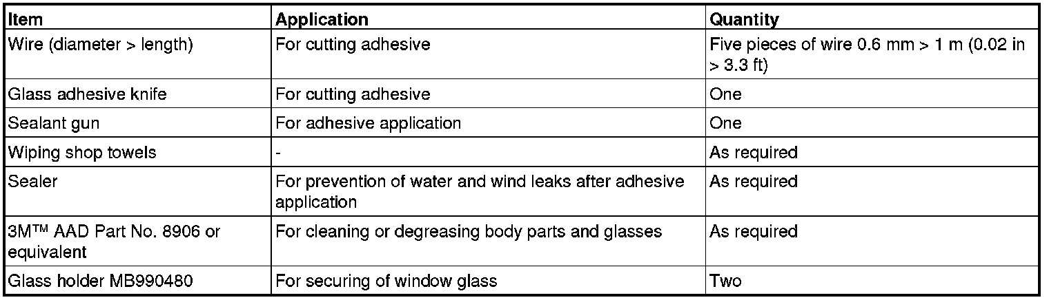 The windshield glass, quarter window glass and liftgate window glass are attached by an urethane-base adhesive to the window frame. This adhesive provides improved glass holding and sealing, and also gives body openings a greater structural strength.