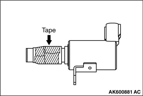 - Before installing O-ring, wind sealing tape around the oil passages cut-out area of engine oil control valve, to prevent damage. If the O-ring is damaged, it can cause an oil leak.