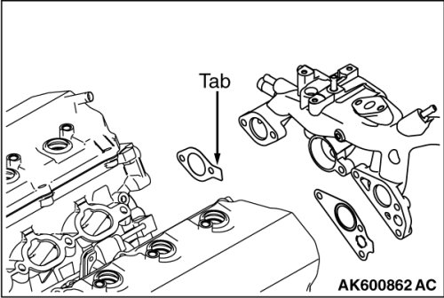 Install the exhaust gas recirculation valve gasket so that the tab is positioned as shown in the illustration.