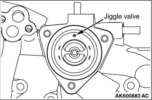 Install the thermostat in the thermostat housing with its jiggle valve located at the top position.