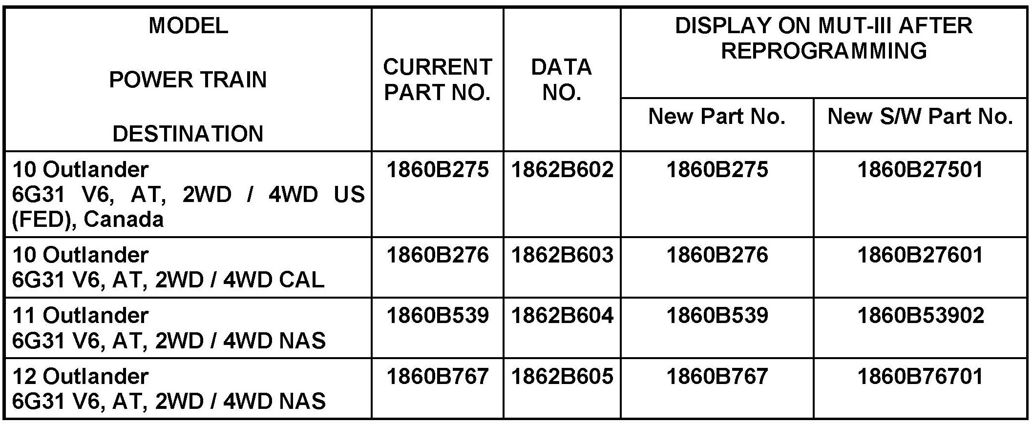 2010-2012 Outlander w/6G31 3.0L AT 2WD/4WD