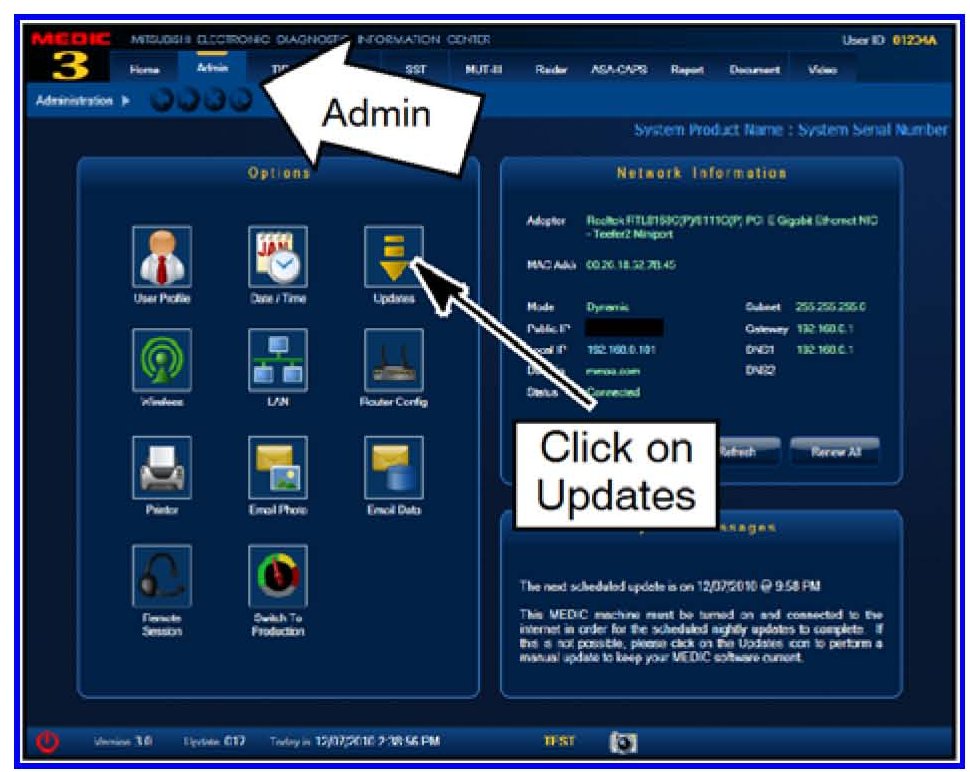 3. Select the MEDIC 3 Admin tab and click on "Updates."