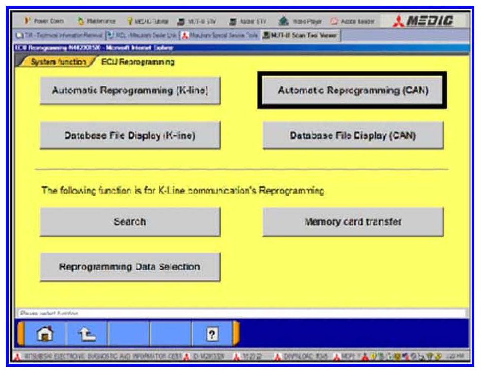 l. .The Automatic Reprogramming(CAN) database screen will display.