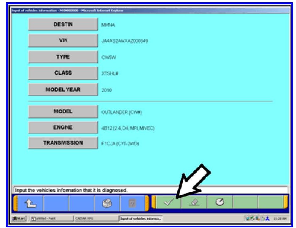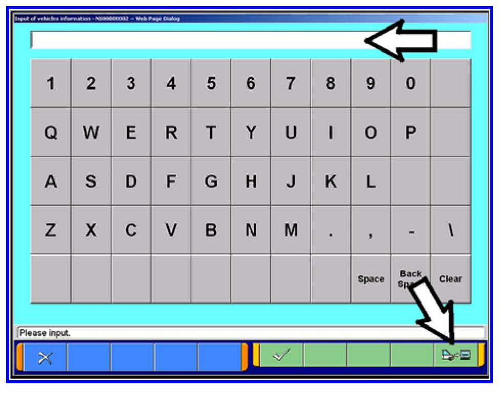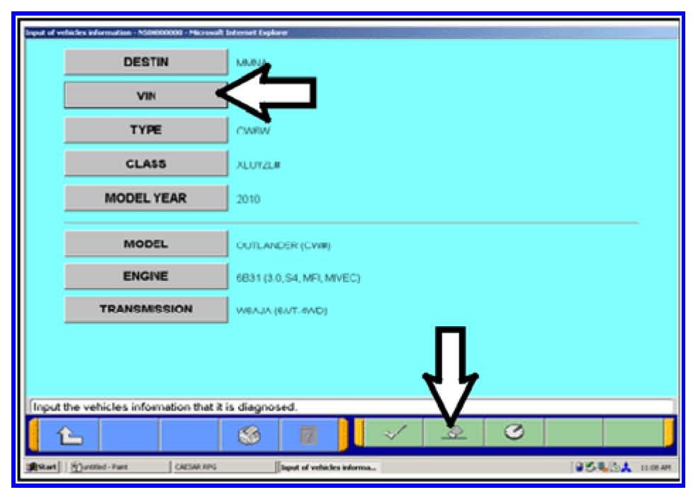 h. Click on the icon in the lower RH corner of the screen to have MUT-III automatically read the VIN. If a message appears saying that the VIN cannot be input automatically, manually type the 17 digit VIN into the VIN field at the top of the page.