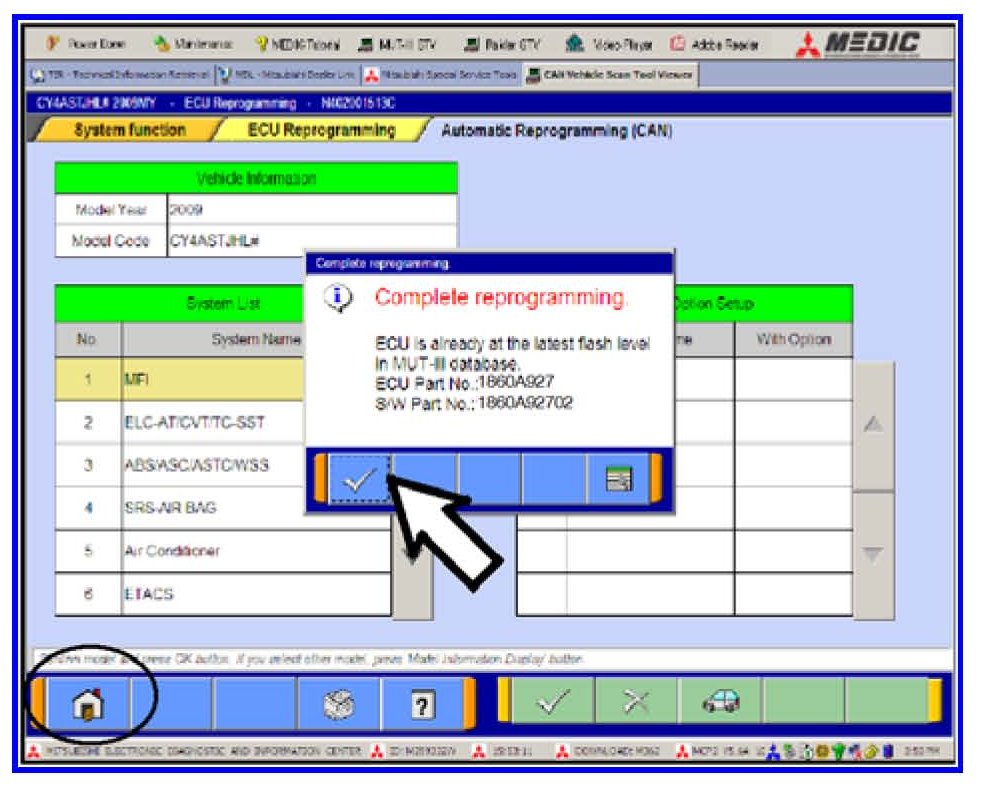 q. Click the check mark and you will be returned to the "ECU Reprogramming" page.