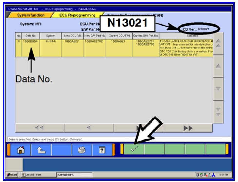 If more than one row is displayed in the table, refer to the ECM Reprogramming Chart on page 2 to select the proper Data No. for this procedure and select the appropriate row.