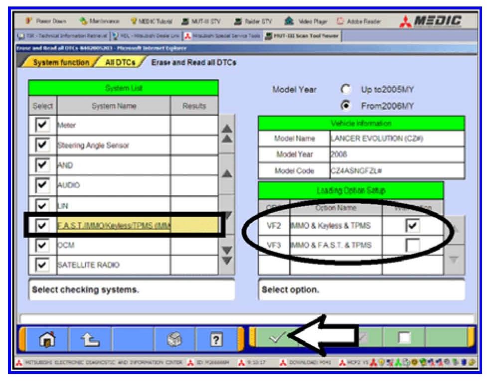 e. In the left column, scroll to and click FAST/IMMOB/KEYLESS/TPMS. In the right column, check the correct option code (VF #) from the Loading Options Setup list. This will activate the check mark at the bottom of the page.