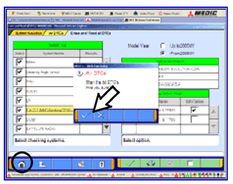 b. If DTCs do not return click the check mark to clear the window and then click the Home icon in the lower left of the screen to return to the main menu.