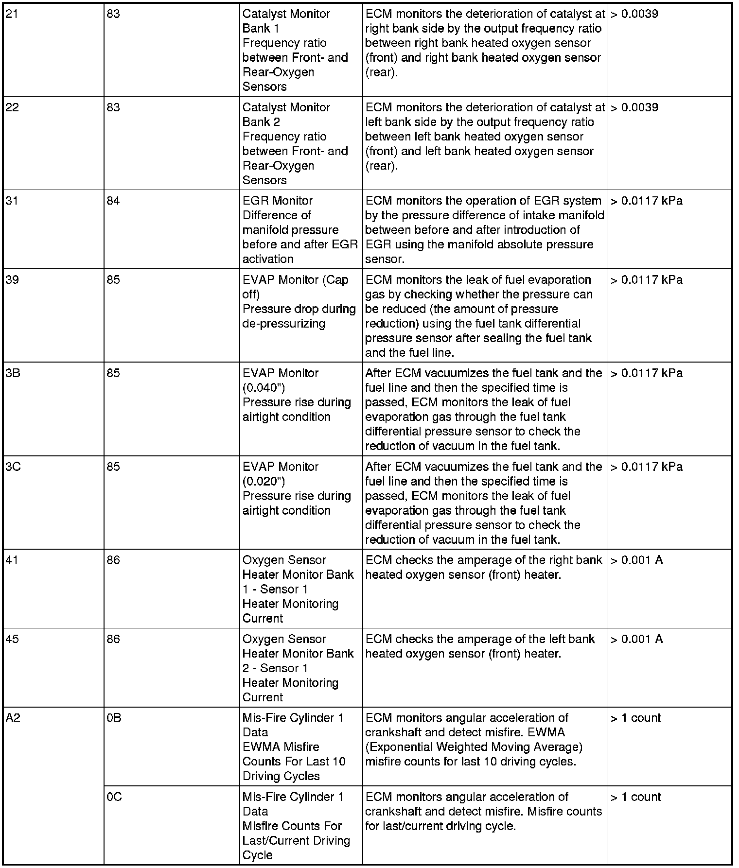 When the monitored test results are erased by the battery disconnection and so on, the ECM outputs the values in hexadecimal of "0000" or "FFFF", otherwise it outputs abnormal values and so on. In case of this, the ECU outputs are handled as invalid-values. When the first monitor (Readiness Status) is completed after this, the ECM outputs the valid-values.
