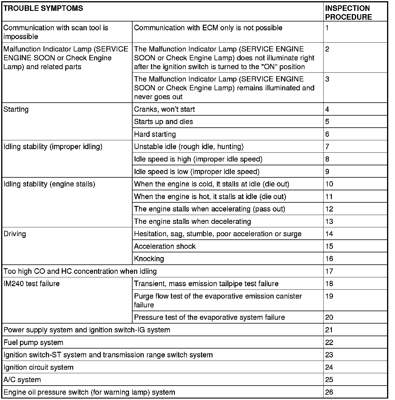 Check that the ECM ground circuit is normal before checking for the cause of the problem.