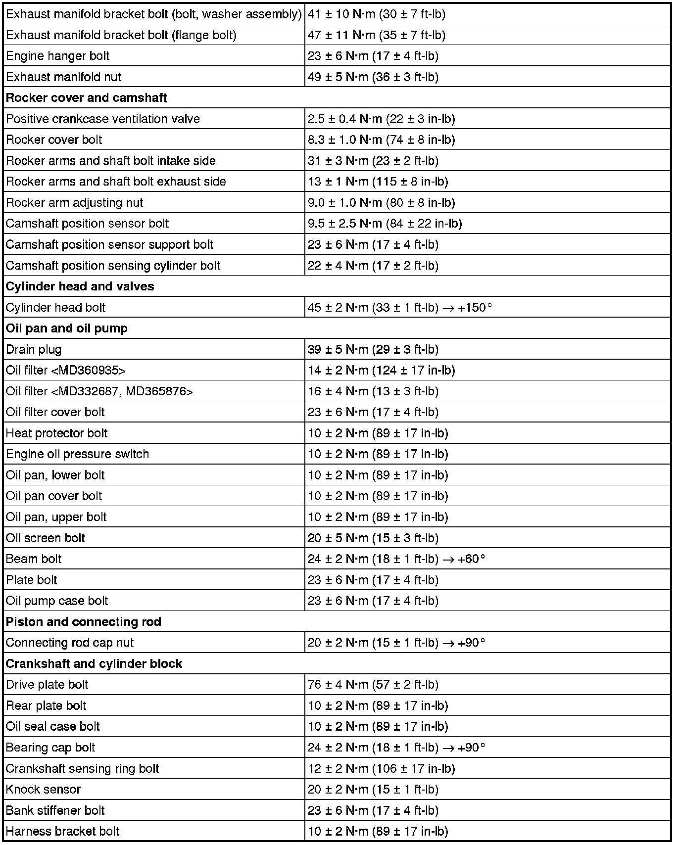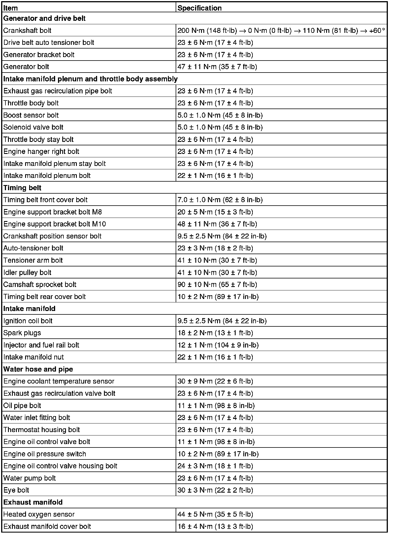 Fastener Tightening Specifications