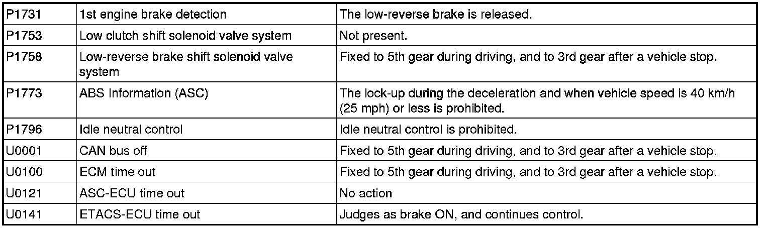 The following table shows how the fail-safe/backup function affects vehicle driveability and operation.