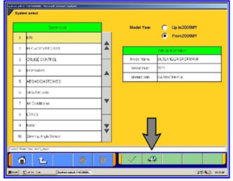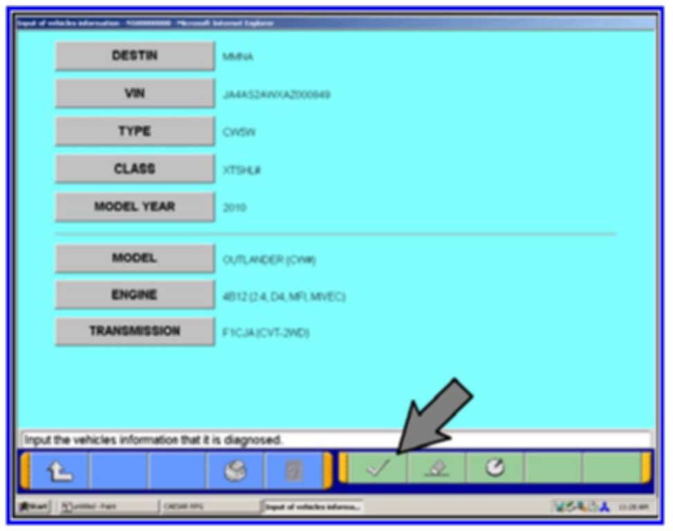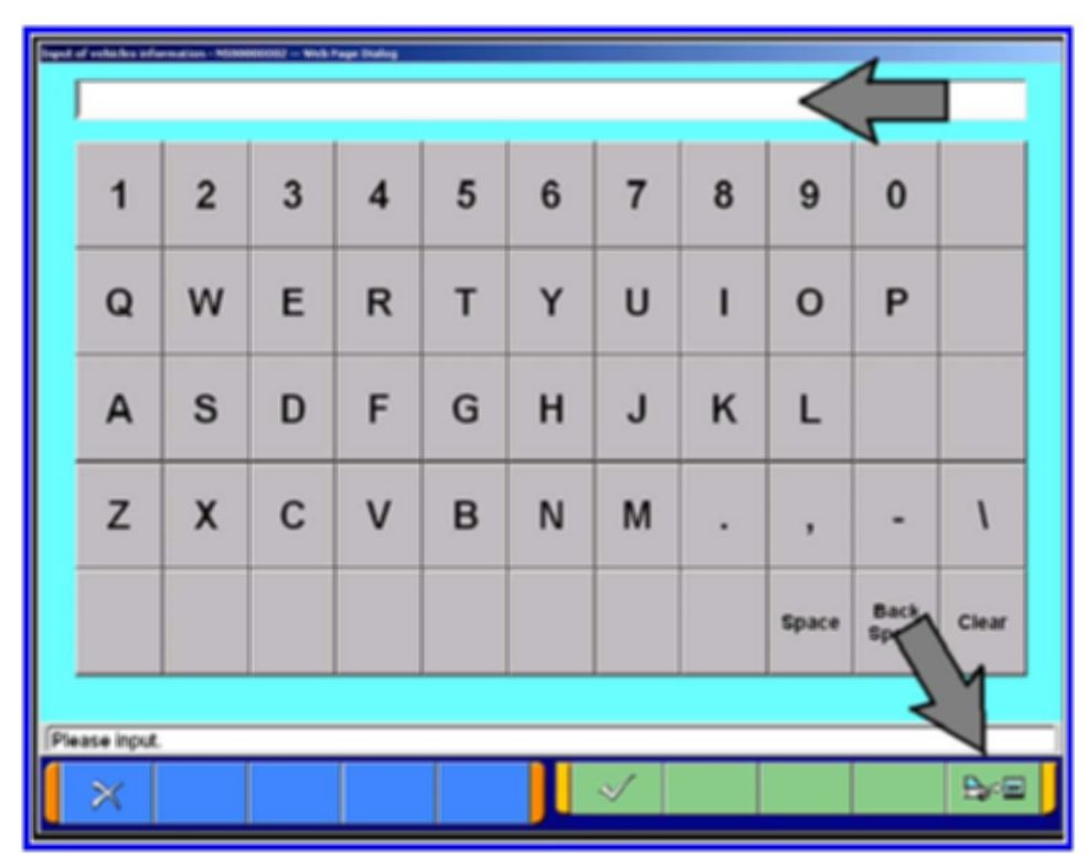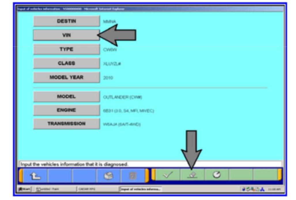 5. Click on the icon in the lower RH corner of the screen to have the MUT-III automatically read the VIN. If a message appears saying that the VIN cannot be input automatically, manually type the 17 digit VIN into the VIN field at the top of the page.
