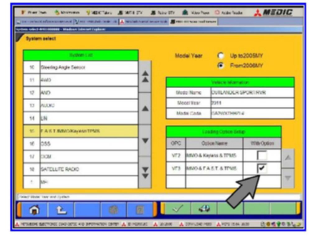 10. The Loading options setup chart display. Select "VF3 - IMMO & FAST & TPMS."