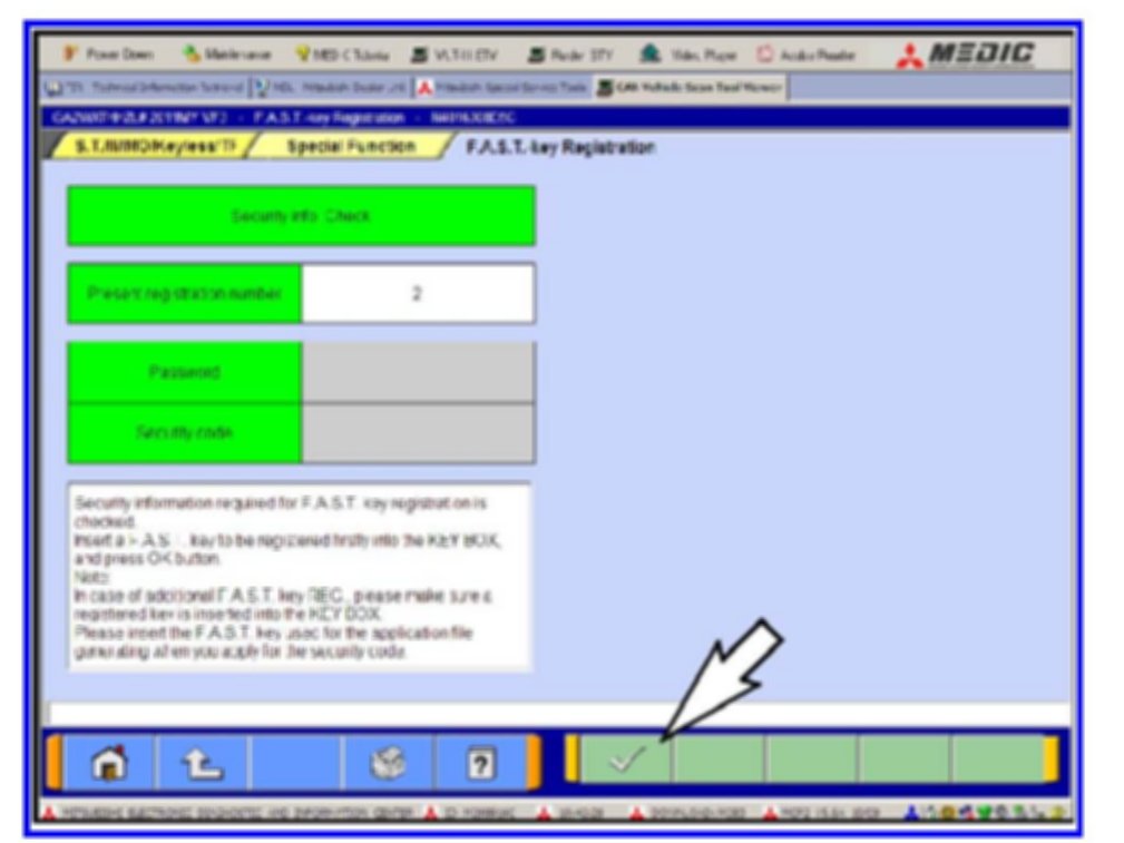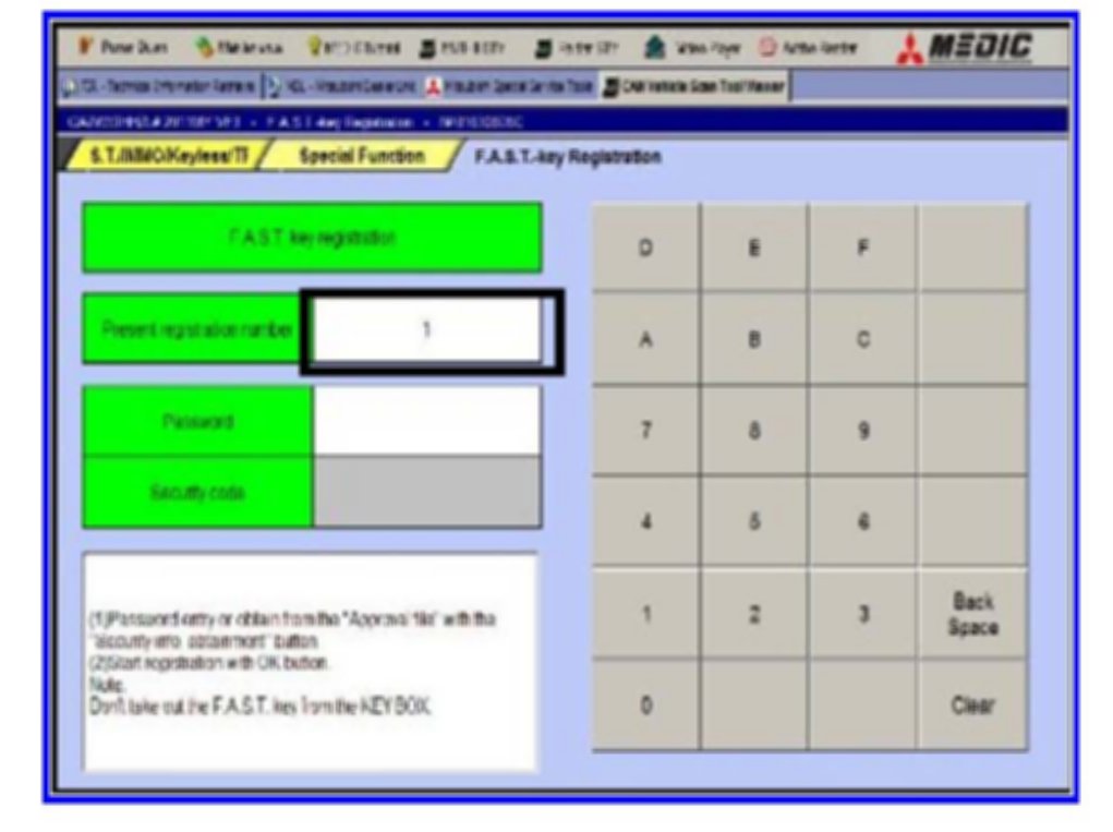 If you have a F.A.S.T. Key transmitter registered to the vehicle you can add or replace transmitters using the following procedure. If you do not have a registered transmitter you must obtain a Security Permission File from MMNA. See details later in this TSB.