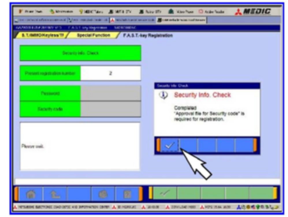 13. When the "Security Info. Check" is Completed, click OK (check mark).