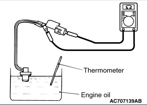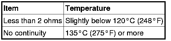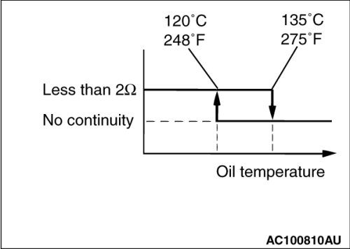 When the oil temperature is 135°C (275°F) or more and there is no continuity, the resistance will not be 2ohms or lower until the oil temperature reduces to 120°C (248°F) or less.