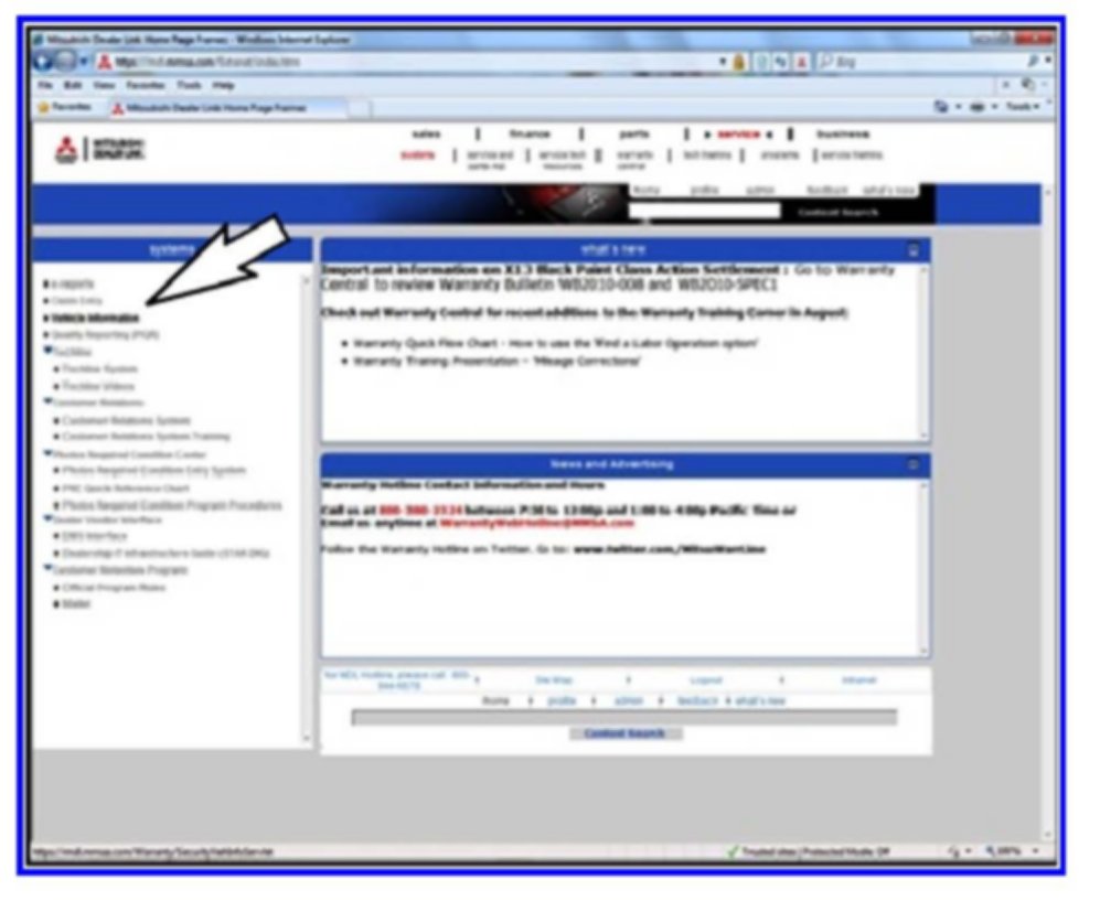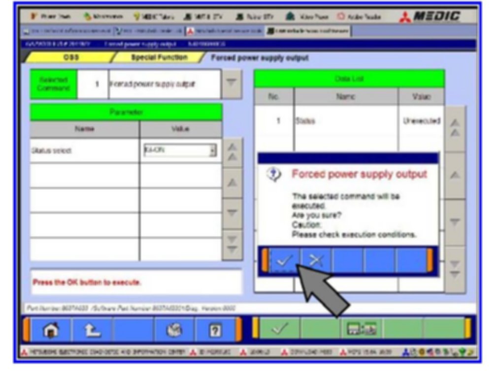 1. Select the Mitsubishi Dealer Link tab on the MEDIC II.