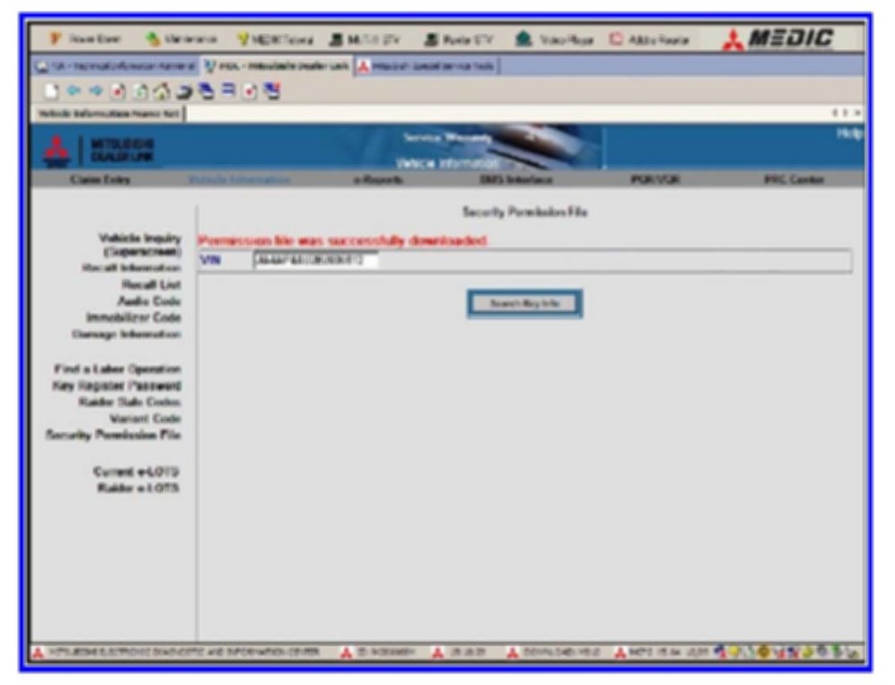 OBTAINING THE SECURITY PERMISSION FILE AS DESCRIBED IN THIS TSB IS FOR VEHICLES SOLD IN THE UNITED STATES ONLY. DEALERS IN CANADA AND PUERTO RICO SHOULD REFER TO TRAINING MATERIALS.