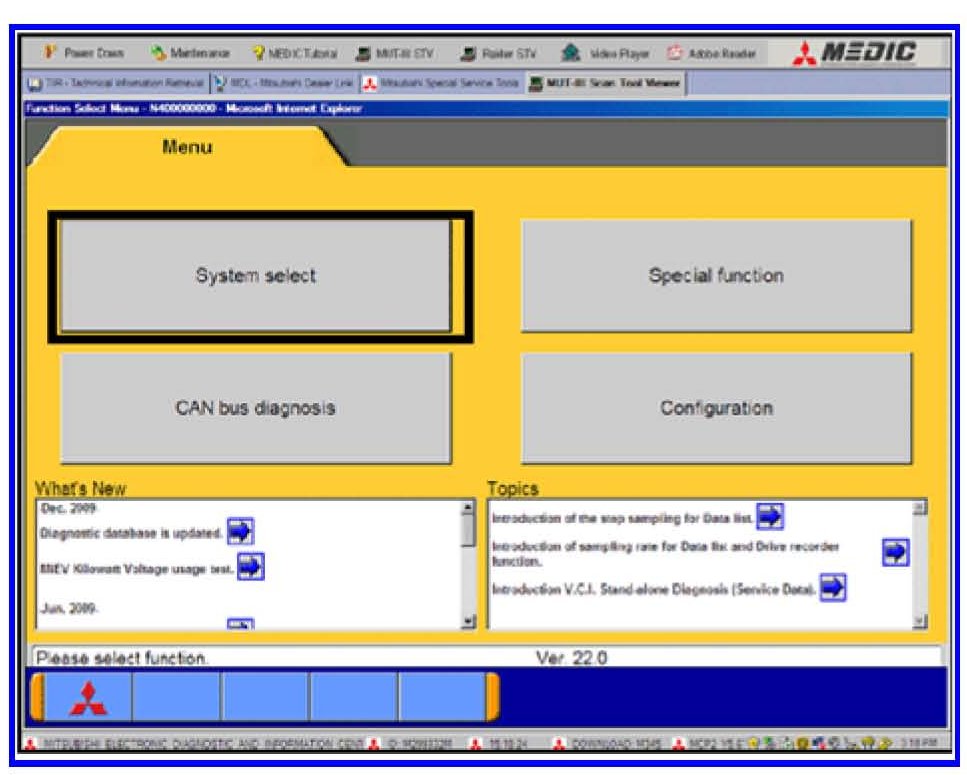 1. From the MUT-III Main Menu click on System Select.