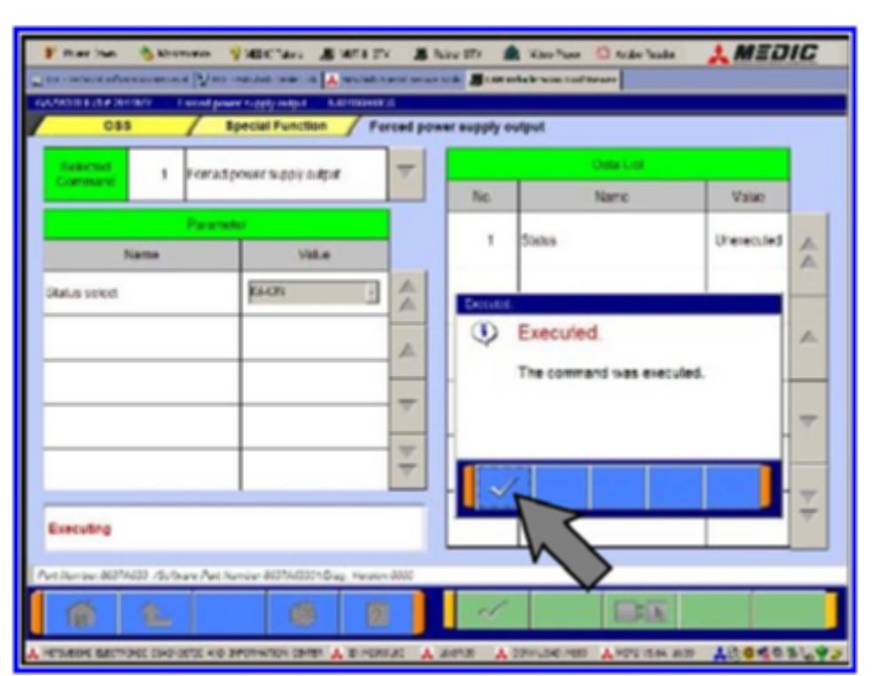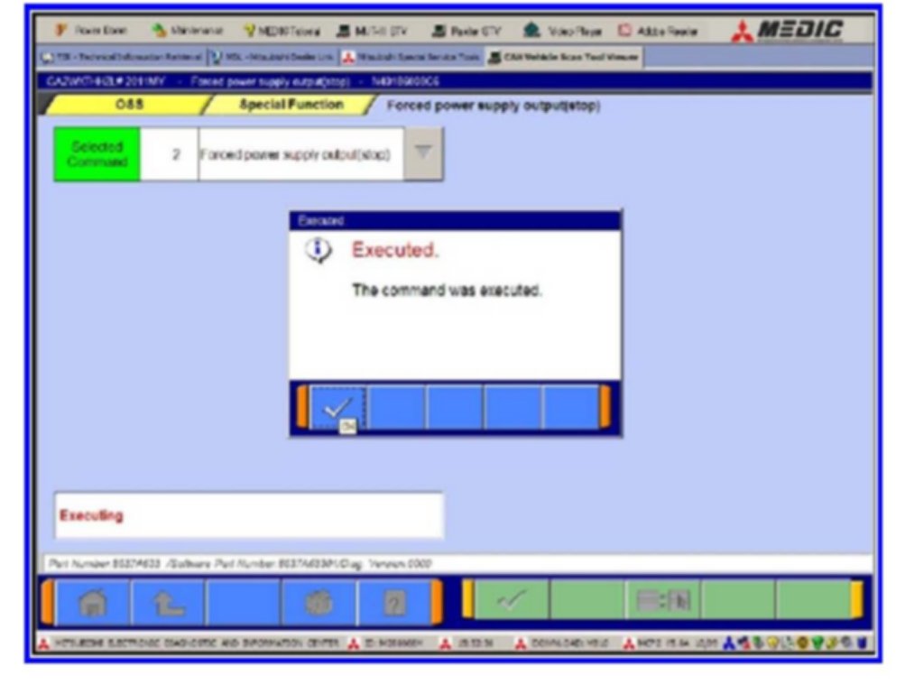 10. This window will display advising that the command was executed. Confirm that the LED in the engine start/stop switch is amber and flashing.