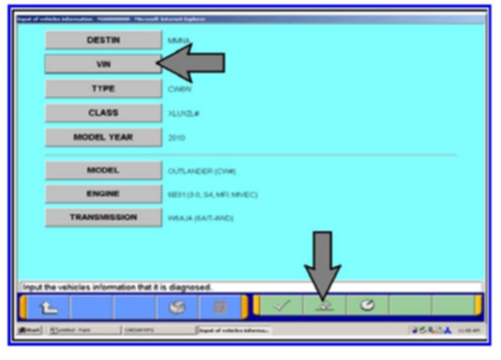 5. Click on the icon in the lower RH corner of the screen to have the MUT-III automatically read the VIN. If a message appears saying that the VIN cannot be input automatically manually type the 17 digit VIN into the VIN field at the top of the page.