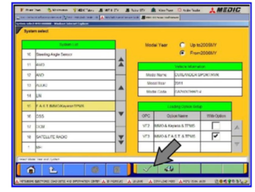 Select "VF3 - Immo.&F.A.S.T.&TPMS." Click OK (check mark) at the bottom of the page.