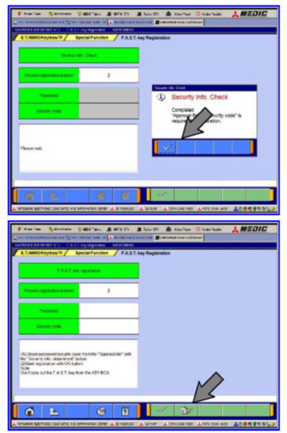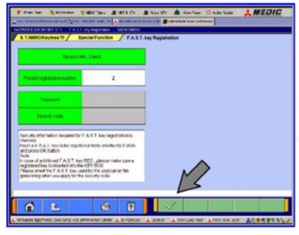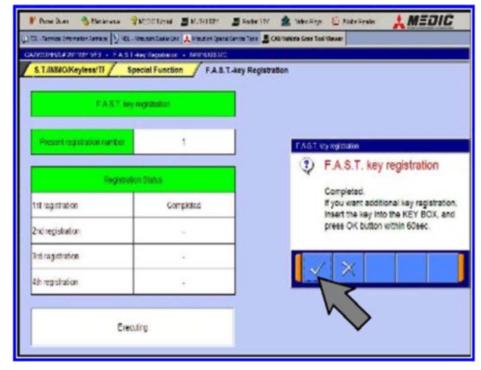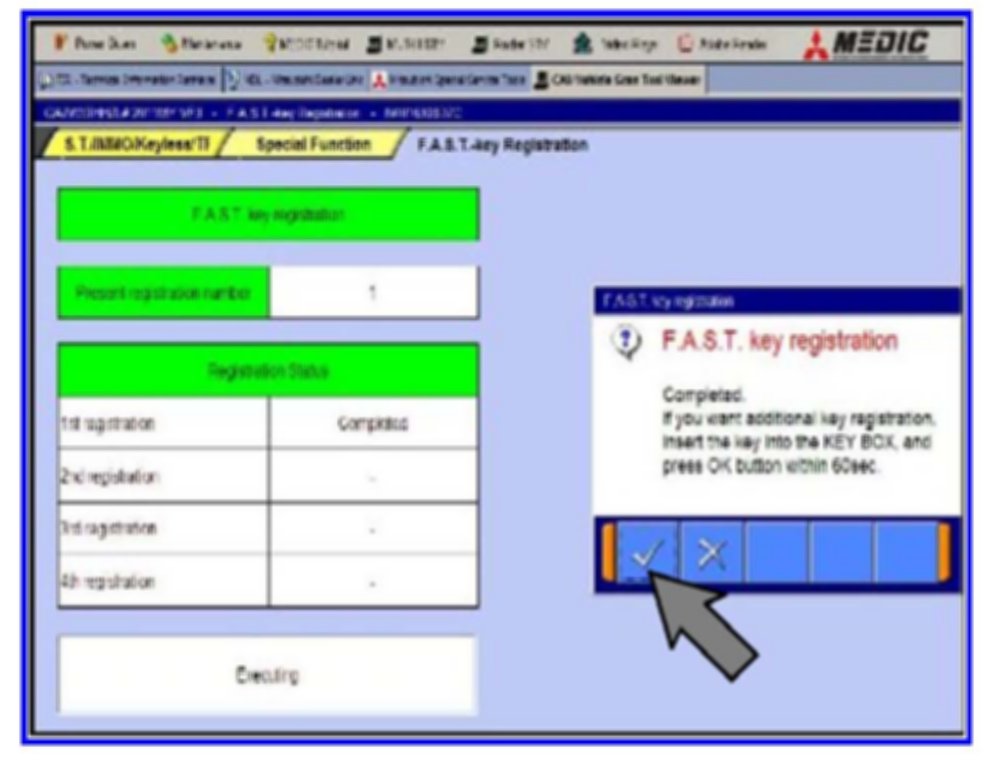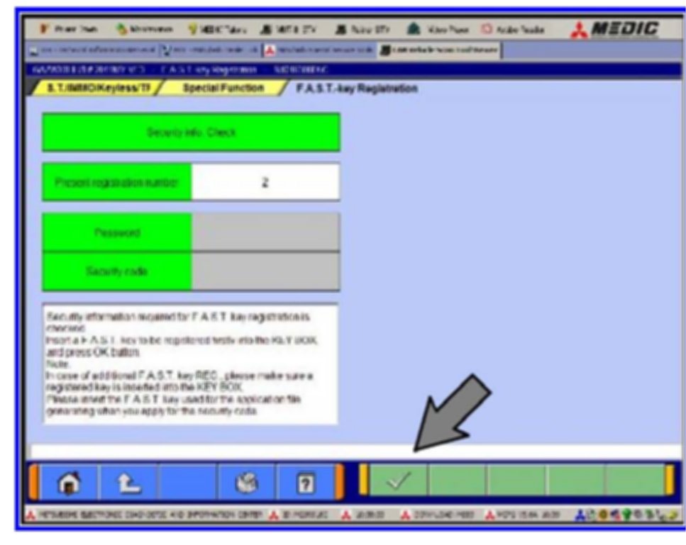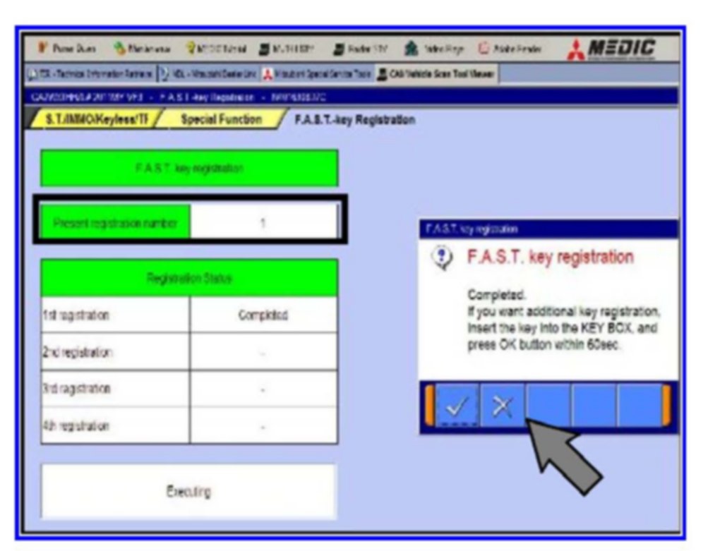 Click OK (check mark) to clear the window and follow the on-screen instructions until all F.A.S.T. keys have been registered.