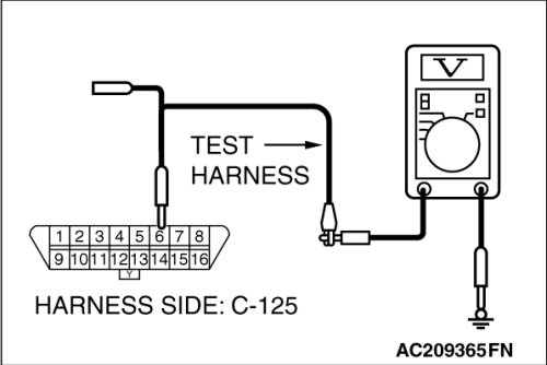 (1)Disconnect ECM [M/T] or PCM [A/T] connector B-18 and combination meter connector C-04, and measure the voltage at the harness side of data link connector C-125.