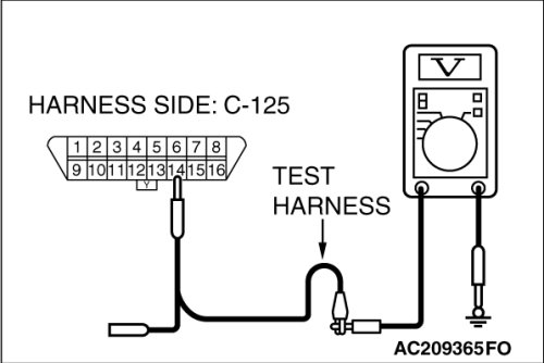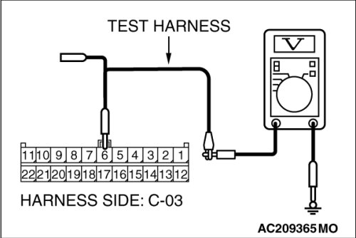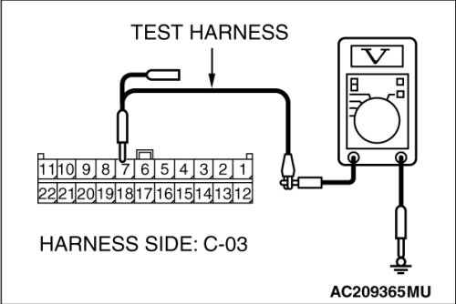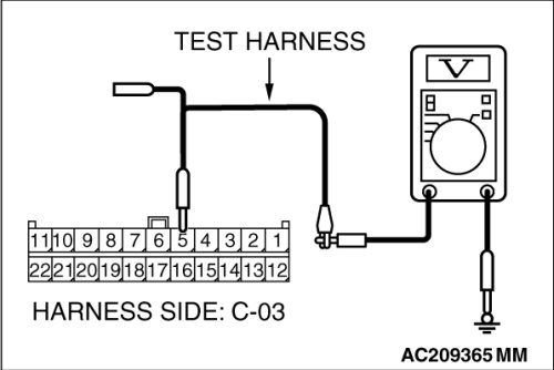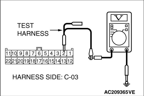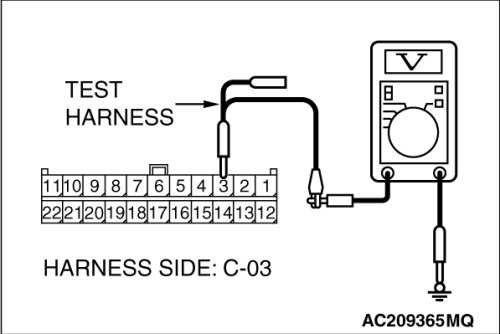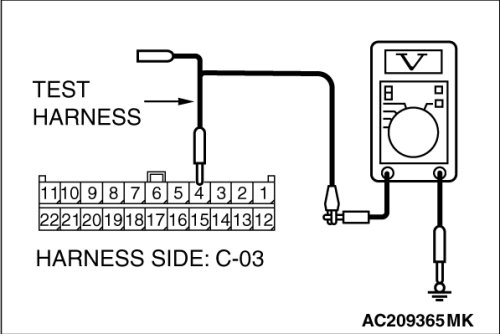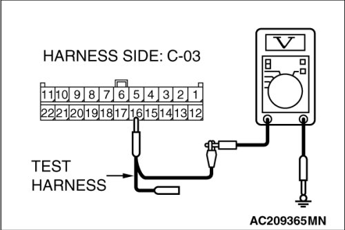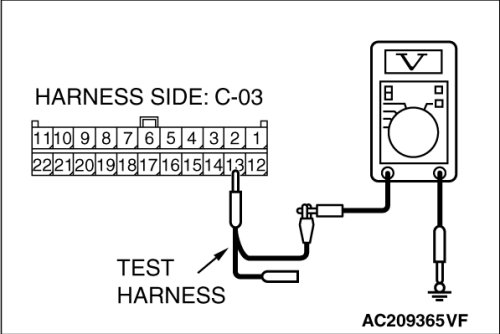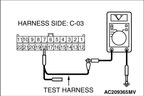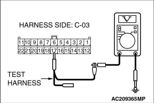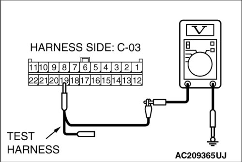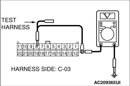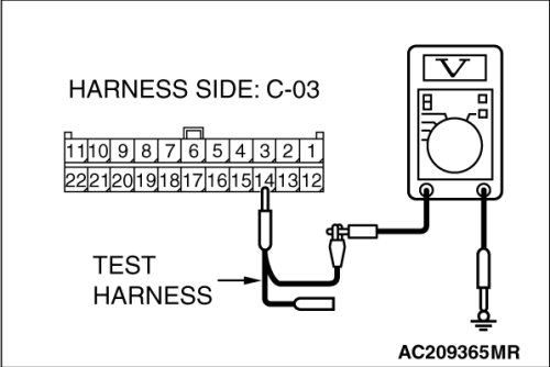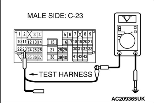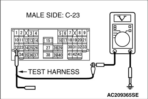 (1)Disconnect intermediate connector C-24 [ECLIPSE] or C-23 [ECLIPSE SPYDER], and measure the voltage at the male side (at front wiring harness side [ECLIPSE] or floor wiring harness side [ECLIPSE SPYDER]).