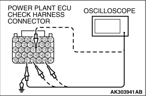 3. Connect the oscilloscope to check harness terminal No. 103. (Check the crankshaft position sensor signal wave pattern.)