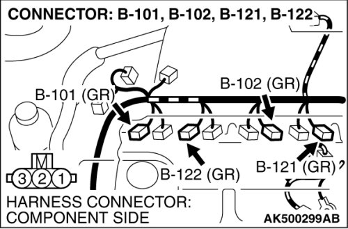 (1)Connect the timing to terminal No. 1 of the ignition coil connector B-101, B-102, B-121 or B-122 in order.