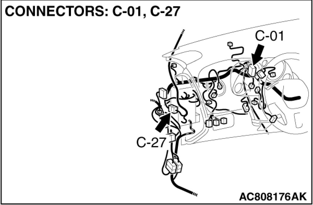 Also check intermediate connectors C-27, D-29 and joint connector C-01. If intermediate connector C-27, D-29 or joint connector C-01 is damaged, repair or replace the connector as described in Harness Connector Inspection Harness Connector Inspection.