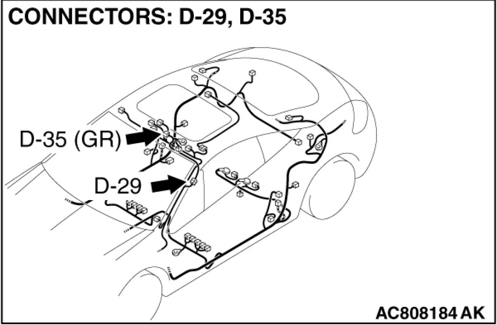 STEP 2. Check sunroof motor assembly connector D-35 and ETACS-ECU connector C-218 for loose, corroded or damaged terminals, or terminals pushed back in the connector.